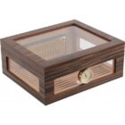 Sturdy cigar humidor with excellent Spanish cedar lining in matt ebony wood with calibrated high precision hair hygrometer. It has Adorini Deluxe gold-plated humidifier with adjustable openings for optimum humidity adjustment and “RibTech” system for better air circulation in the Adorini humidor. At the front and in its frames there is a UV protected glass so you can have unobstructed view of the cigars without having to open the humidor box.