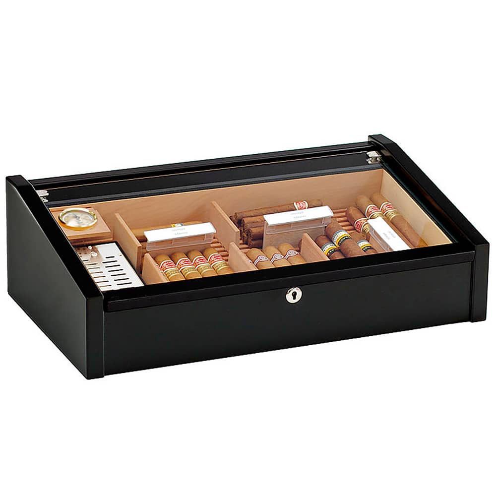 The Vega Deluxe humidor has a glass door at the top which provides direct visual contact with its interior, also the hygrometer is at a specific point so that its indications are visible without the need to open the door.