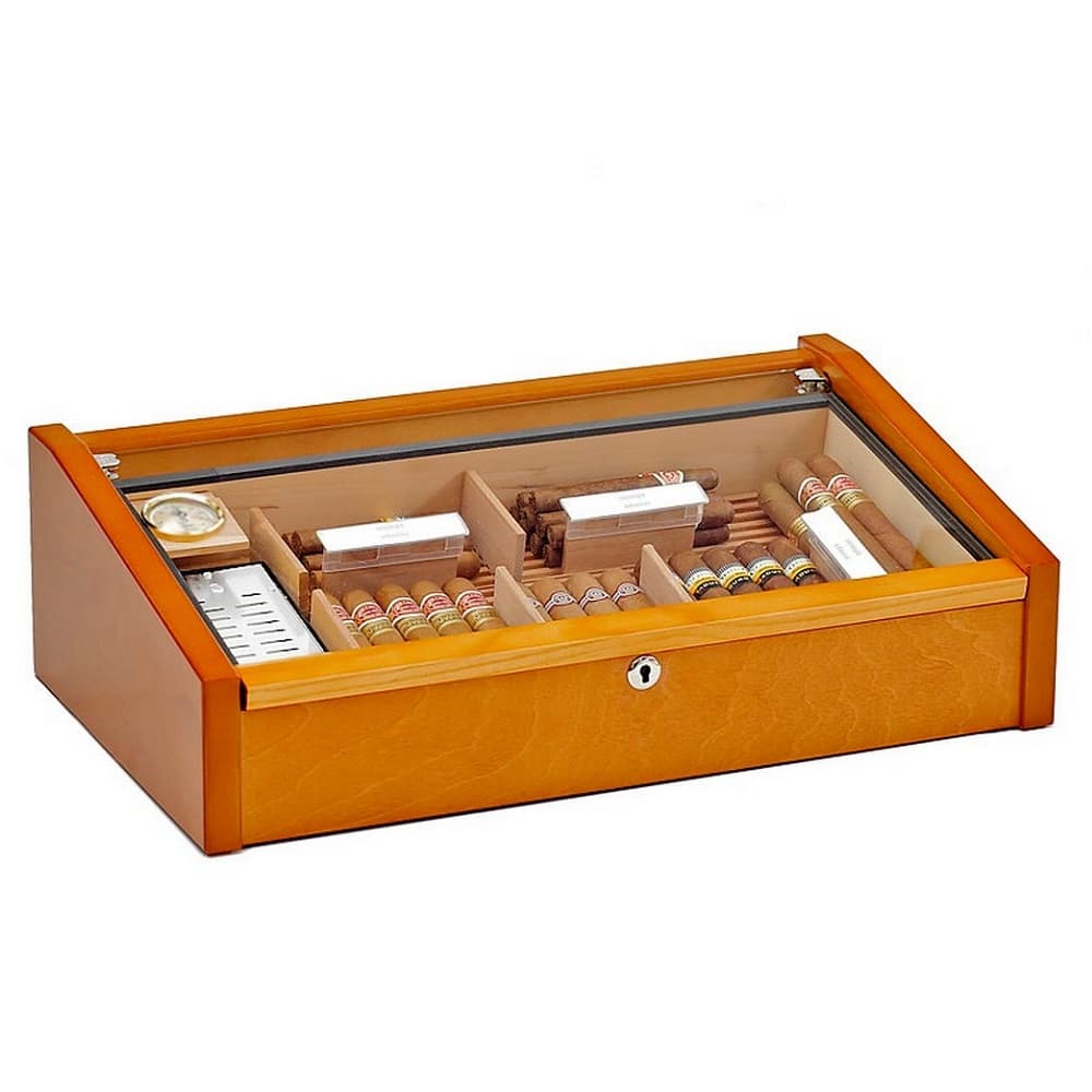 The Vega Deluxe humidor has a glass door at the top which provides direct visual contact with its interior, also the hygrometer is at a specific point so that its indications are visible without the need to open the door.