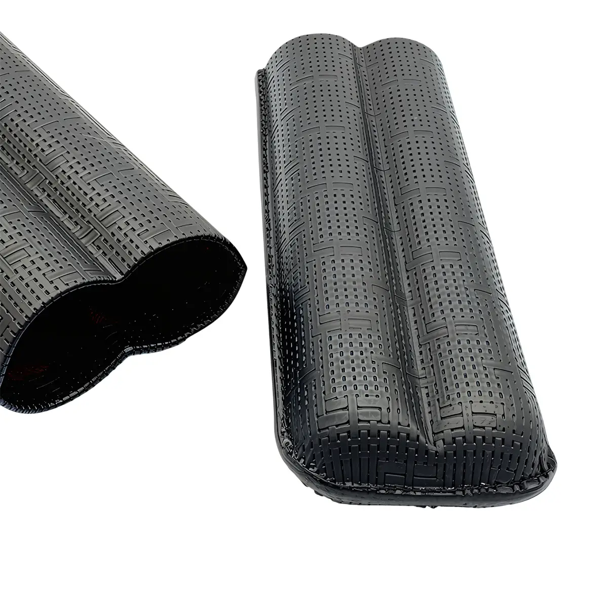 Elegant two-cigar case by Angelo, crafted from embossed black PU leather and featuring the brand’s subtle logo. Its adjustable design allows for flexibility in length, ensuring a perfect fit and safe transport of your cigars. Suitable for cigars up to 56 ring gauge, this case protects them from damage while maintaining their quality. A stylish and practical accessory for everyday use or travel.
