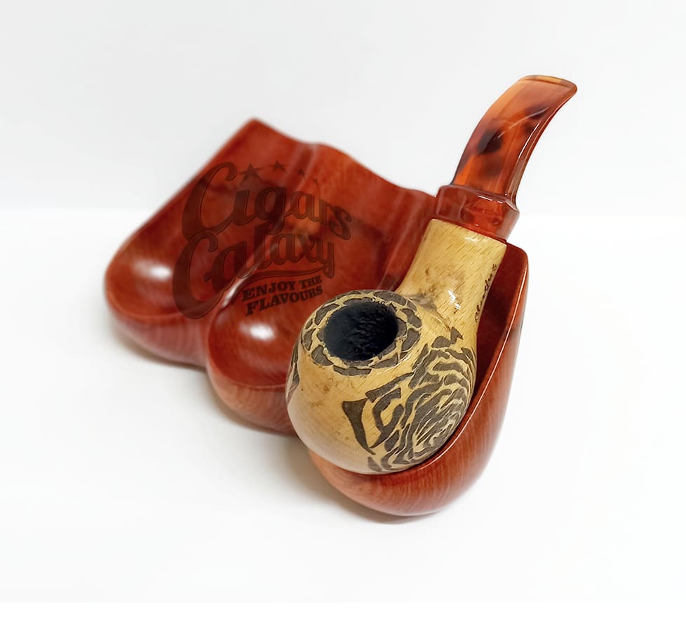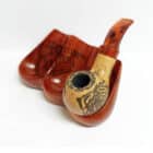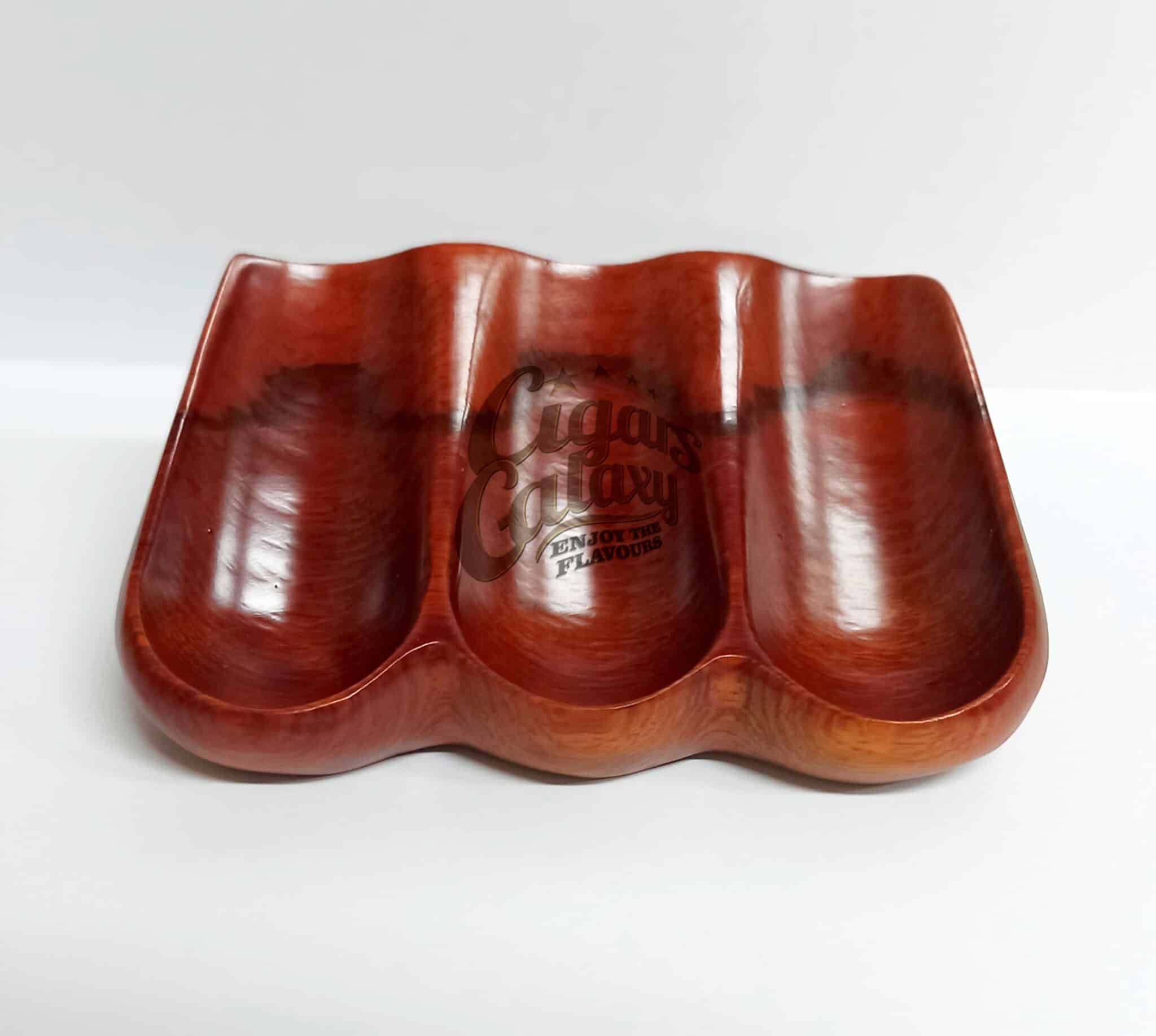 Wooden base made of solid wood for three tobacco pipes in brown color, which highlights the beautiful grains of the wood from Bronica.