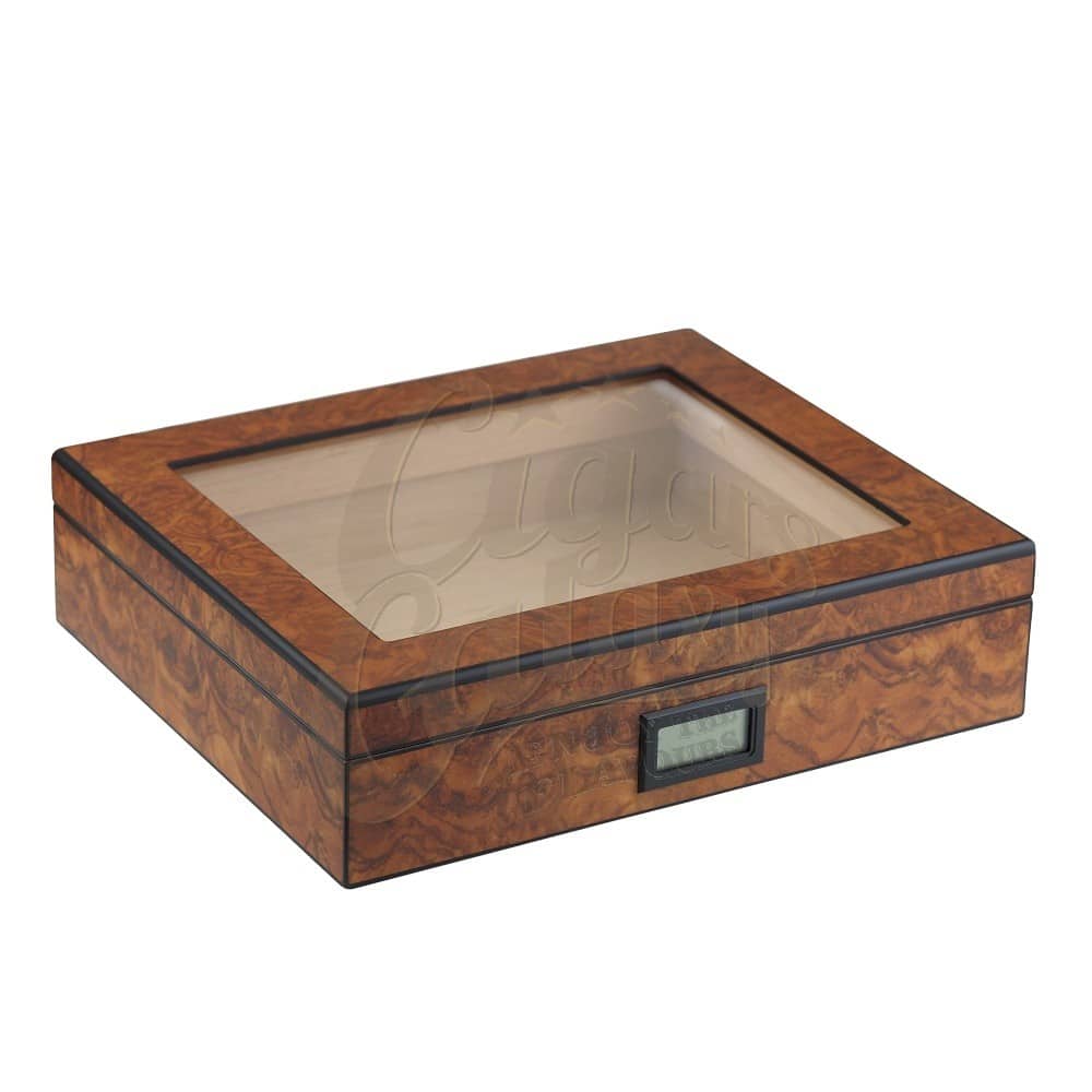 Yγραντήρας πούρων σε ανοιχτό καφέ χρώμα με παράθυρο και εσωτερική επένδυση από κέδρο.