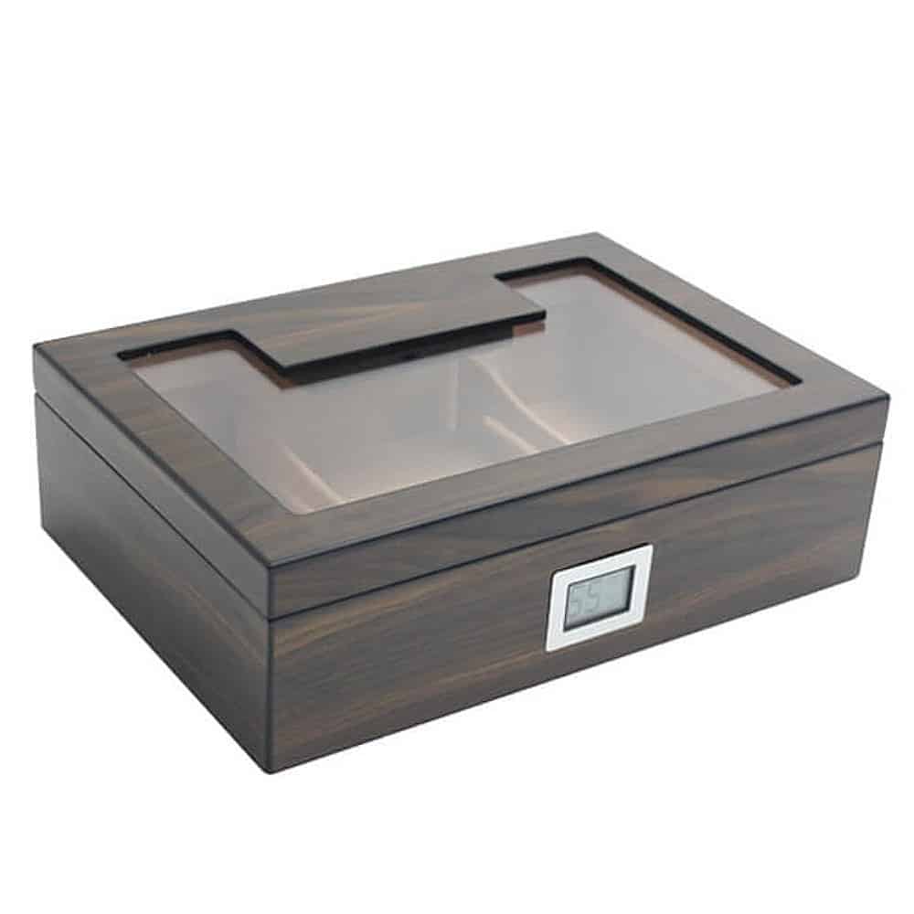 Yγραντήρας πούρων σε ανοιχτό καφέ χρώμα με παράθυρο και εσωτερική επένδυση από κέδρο.