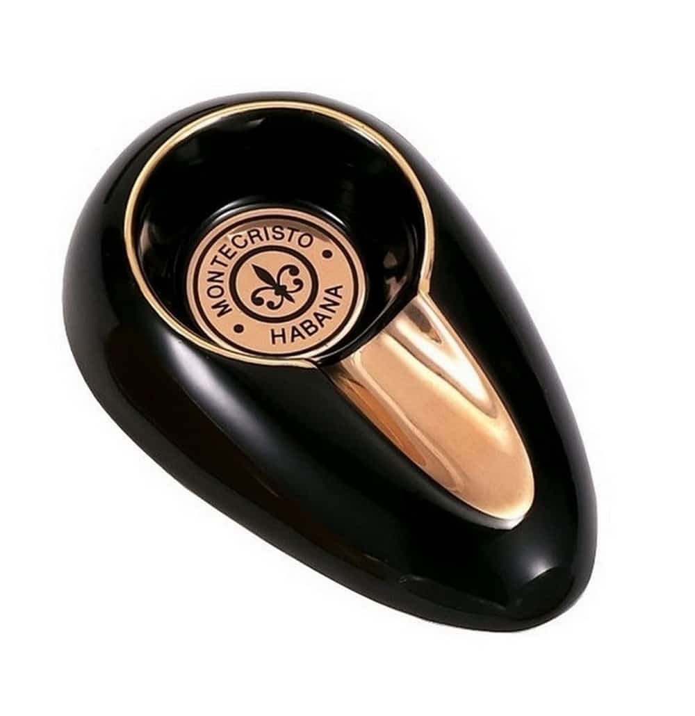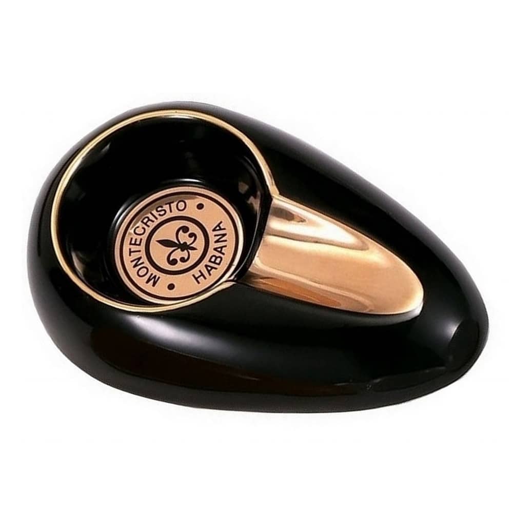 Ceramic black cigar ashtray with Montecristo logo for one cigar. Quality ceramic material, durable & washable.