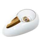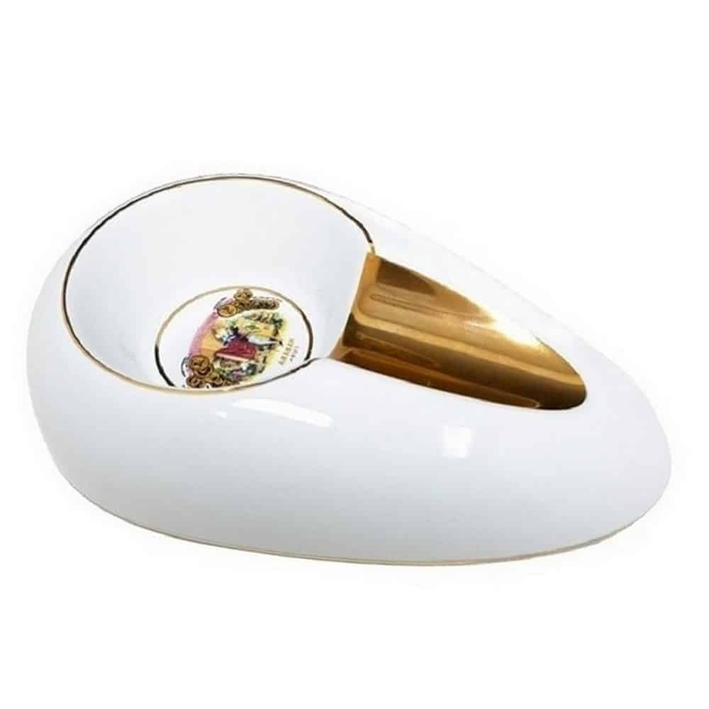 Ceramic white cigar ashtray with Romeo y Juliet logo for one cigar. Large and impressive, will decorate any space.