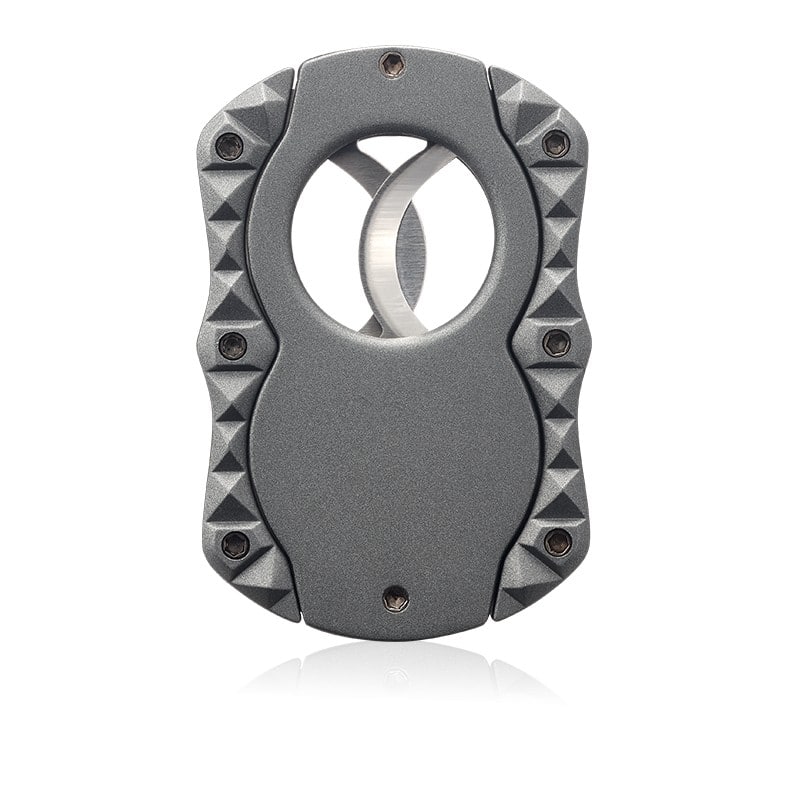 Double guillotine cigar cutter with unique skeleton blades, stainless steel blades, a 62 ring gauge aperture for large cigars, spring-loaded release, Quasar pattern handles and release button, ergonomic design for a sure grip. The Quasar Cut also features an innovative open-surface blade, allowing only the cutting edge to slice through the cigar.