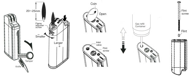 IMCO. The reliable pipe lighter, with large gas tank for many switches and built-in Tamper & Knife tools.