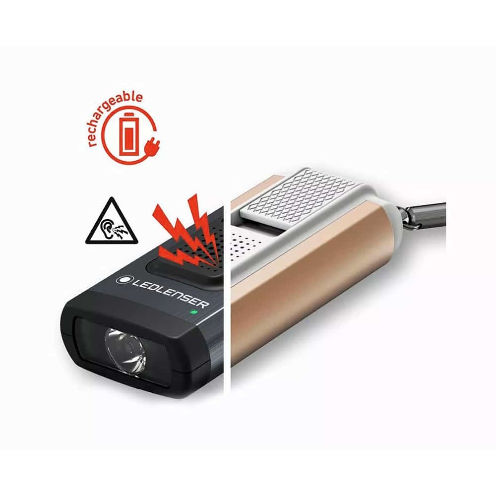 - 2 in 1 accessory: acoustic signal generator for emergencies and powerful keychain light