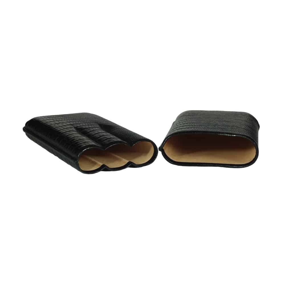 A very practical leather case for robustos from the German Martin Wess. It is made of very thin cowhide leather, which is ideal for preserving the aromas of cigars, in black color with a lizard skin texture. In a classic design that is adjustable in length. It is very easy to maintain and can be cleaned with a damp cloth. Designed to fit 3 robustos.