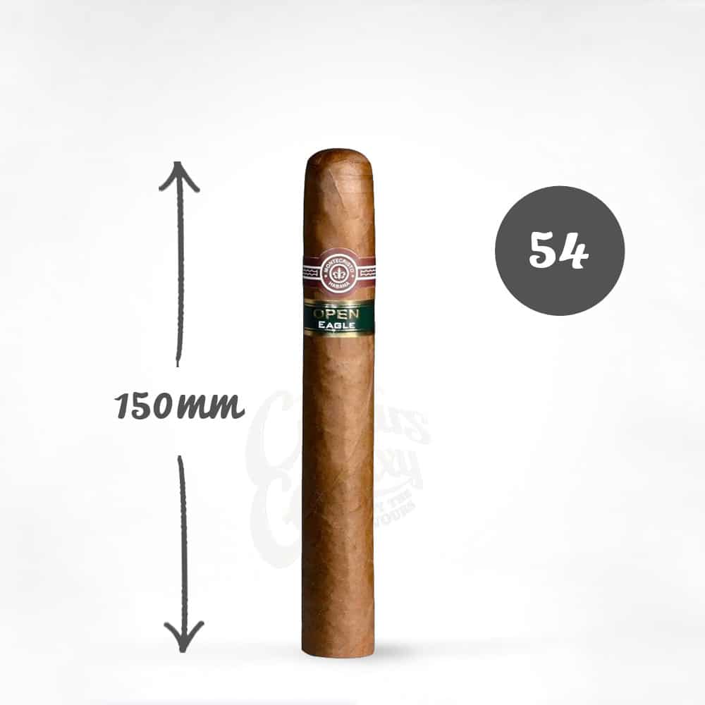Eagle is a vitola Geniales cigar with a second band writing with gold letters the word «Open» and it has the name of the cigar.With lighter blend that reflects the change in modern smokers choises. Its ideal for everyone since its dominated by a light woody flavor without being agressive.