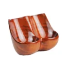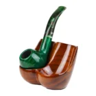 Wooden base made of solid wood for two tobacco pipes in brown color, which highlights the beautiful grains of the wood.