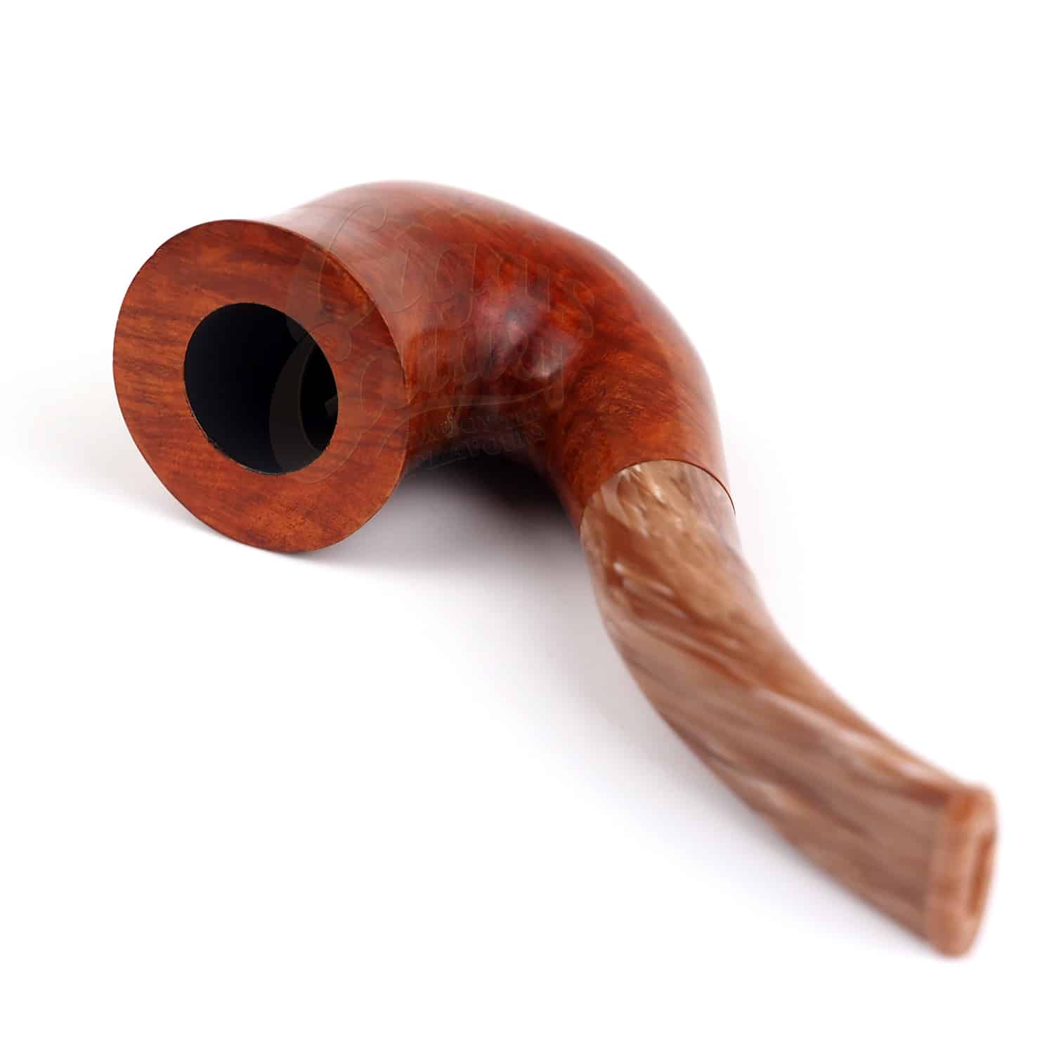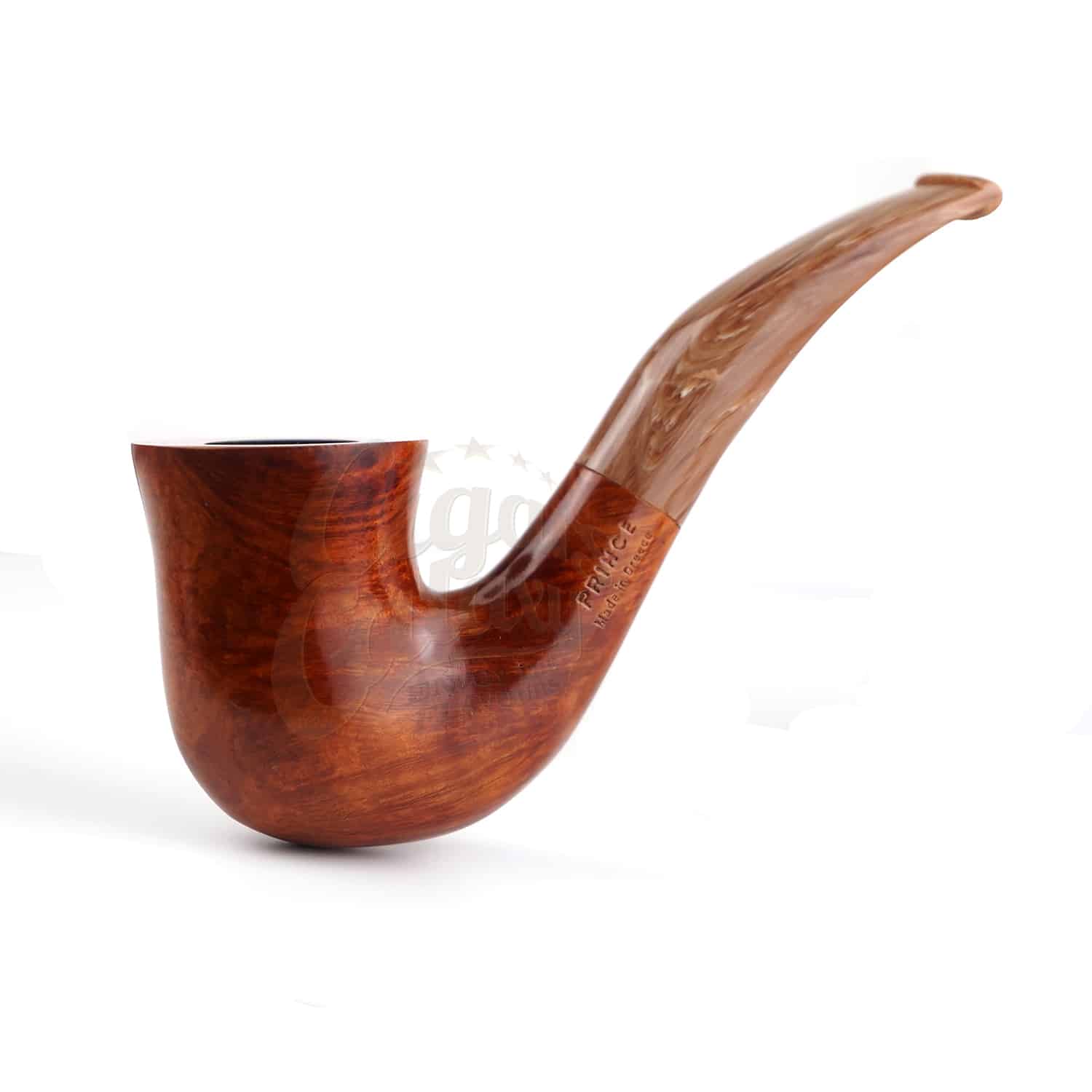 A very beautiful handmade tobacco pipe from Prince with classic design, bent Dublin bowl in light brown color and smooth finish. It has a wide high quality light brown acrylic mouthpiece. It fits a 9mm filter and is at an extremely low price!