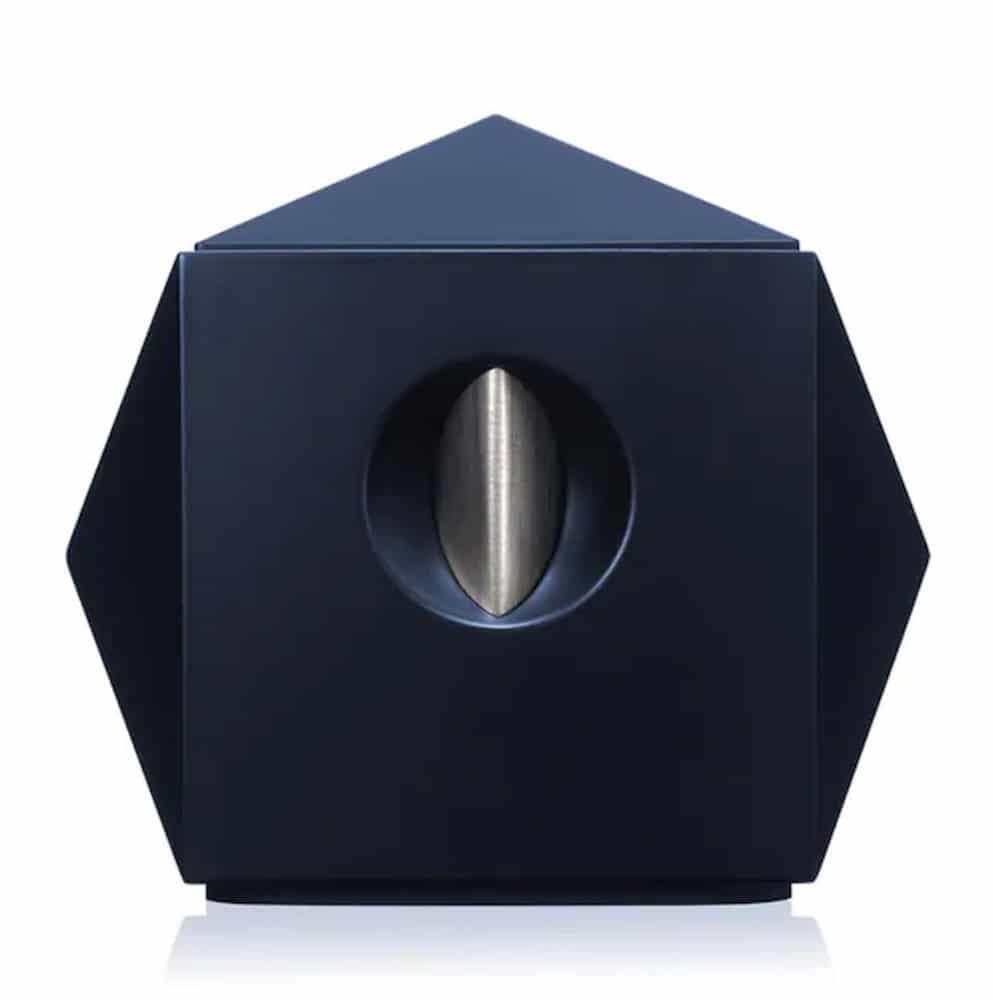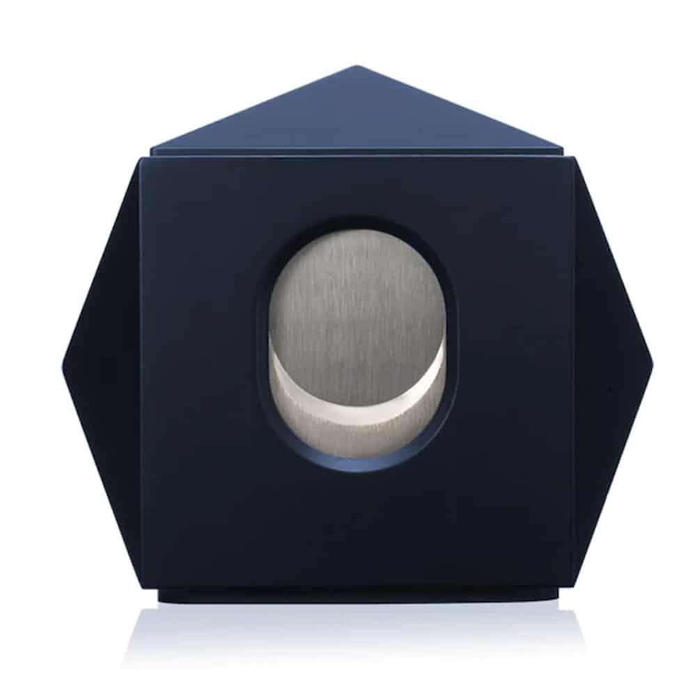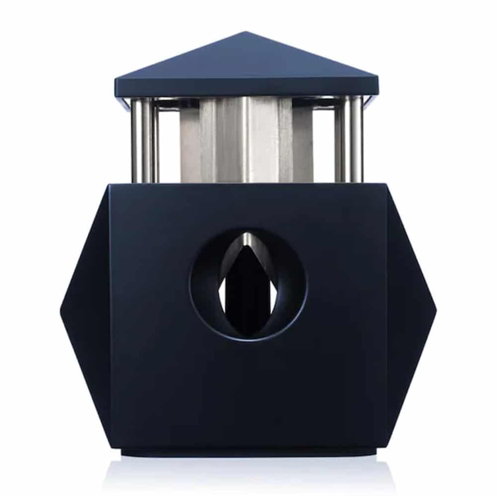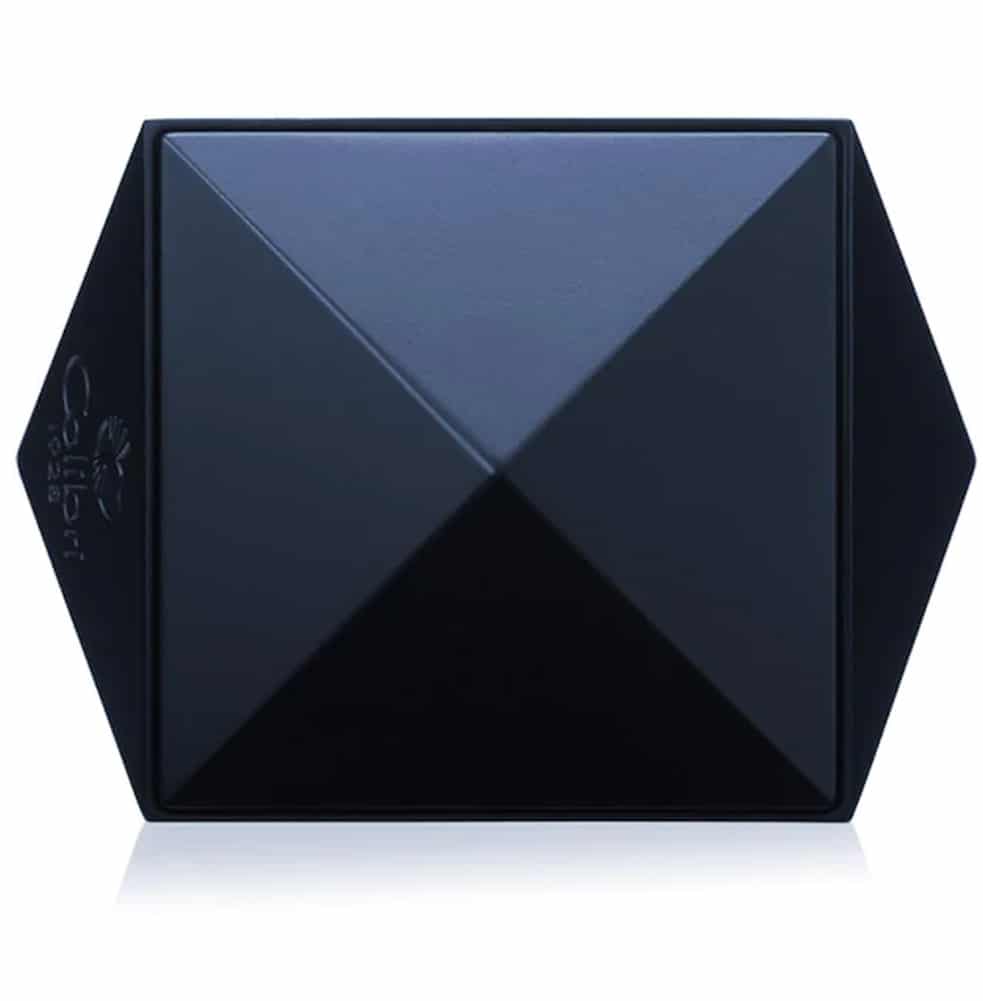 The cutter is engaged by pushing down on the top peak of the Quasar, which releases and pops up the cutting unit with both blades ready in unison. The V-Cut side cleanly cuts a wedge as deep as 7mm on a 60-ring for a full robust draw. The straight cut provides an equally crisp straight cut on cigars up to a 70-ring. The body is a sturdy all-metal form. The top peak holds the blades and runs on oiled quad pistons to ensure absolute smooth action when in motion. The undercarriage is lined with a rubber gasket for non-slip stability while in use and to prevent damage to the desktop. Also, on the bottom is a twist cap for retrieving and disposing of the collected cigar clippings. (Weight: 1 lb. 5 oz – 592 g)