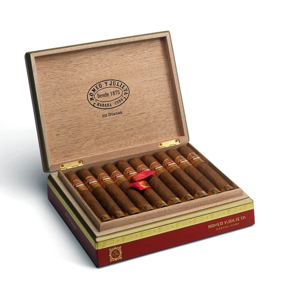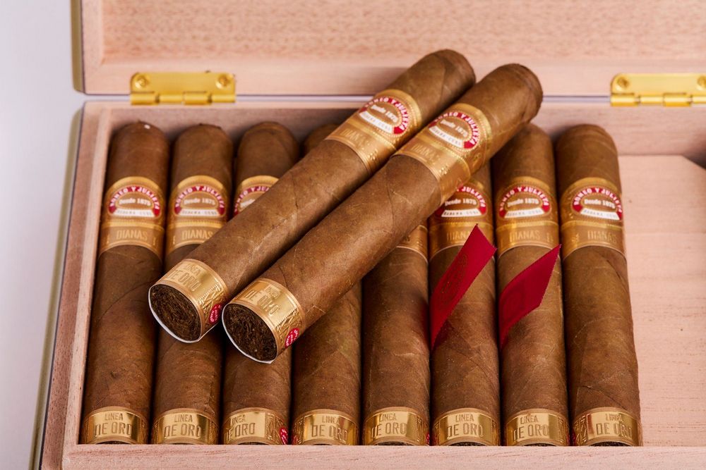 Romeo y Julieta Linea de Oro was originally announced in 2020 to commemorate 145 years of the iconic brand. The new line is presented in three sizes: Dianas, Hidalgos and Nobles. All three sizes have been blended to a medium to full taste, a step up from the famous medium bodied blend used in the classic range. The cigars are presented in stylish red lacquered boxes that carry an embossed medallion set on the lid. Each of the 20 cigars within are dressed with a bespoke band bearing the name of the individual vitola and a unique golden foot band that have edges trimmed with holographic elements. Charming aromas of fresh bread crust and nuts are surrounded by more fragrant, floral and discreetly fruity notes. The sweet smoke gains a tart malty cocoa undertone.