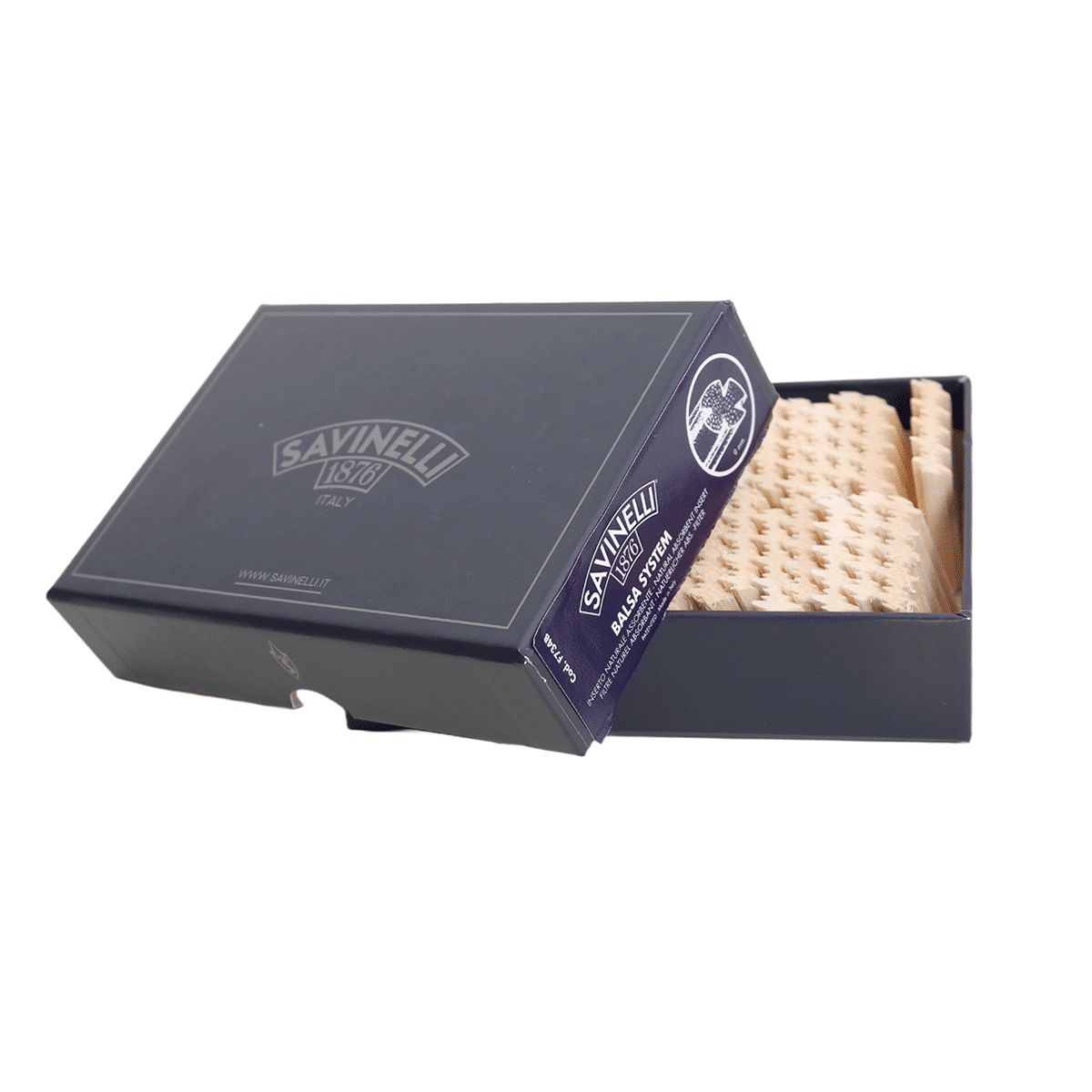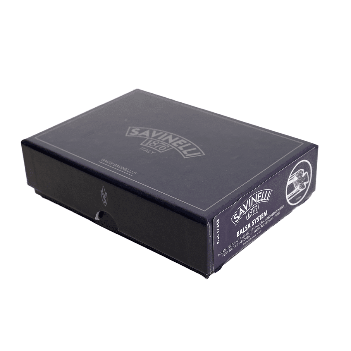 The Savinelli Balsa filter is a filtration system that uses the natural properties of balsa wood. It allows absorption of moisture and impurities from the smoke, without the addition of chemical elements, ensuring a clean smoke. This absorption capacity is due to the highly porous balsa fibers, without changing the smell of tobacco. This patented filtration system has been tested both by the EURATOM Research Center of Ispra and by CHEMICAL & ENVIRONMENTAL TECHNOLOGY Inc. Research Center (USA) with approximately the same results: “… the Balsa filter has the ability to absorb 77% of nicotine and 91% of tar containing tobacco without changing the flavor.” The filter is simple and easy to use. Savinelli recommends replacing the filter every two or three times or every time you clean the mouthpiece. Each package contains 200 filters.