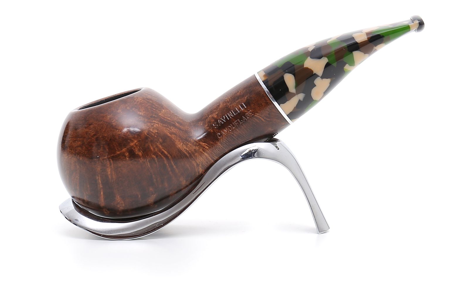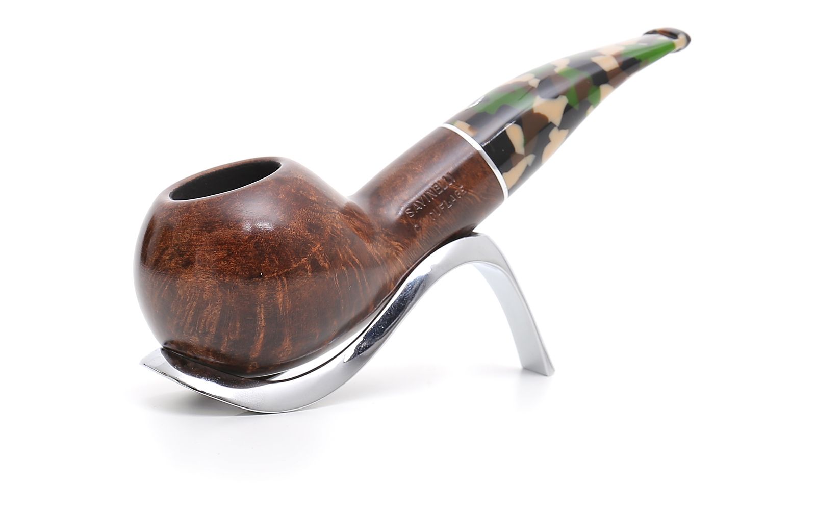 Savinelli Camouflage 320 KS Smoke Pipe is a beautiful semi-bent pipe with a smooth finish. A very special qualitative smoke pipe for your collection with amazing mouthpiece in wonderful dark brown color.
