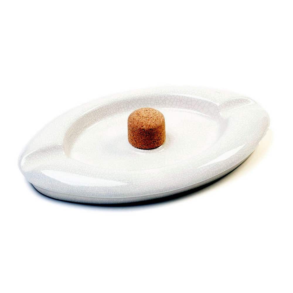 Savinelli premium-quality ceramic pipe ashtray. It has oval shape and it combines an ashtray space with a cork pipe knocker and 2 stands for cigarettes or cigars. To have it all in order!