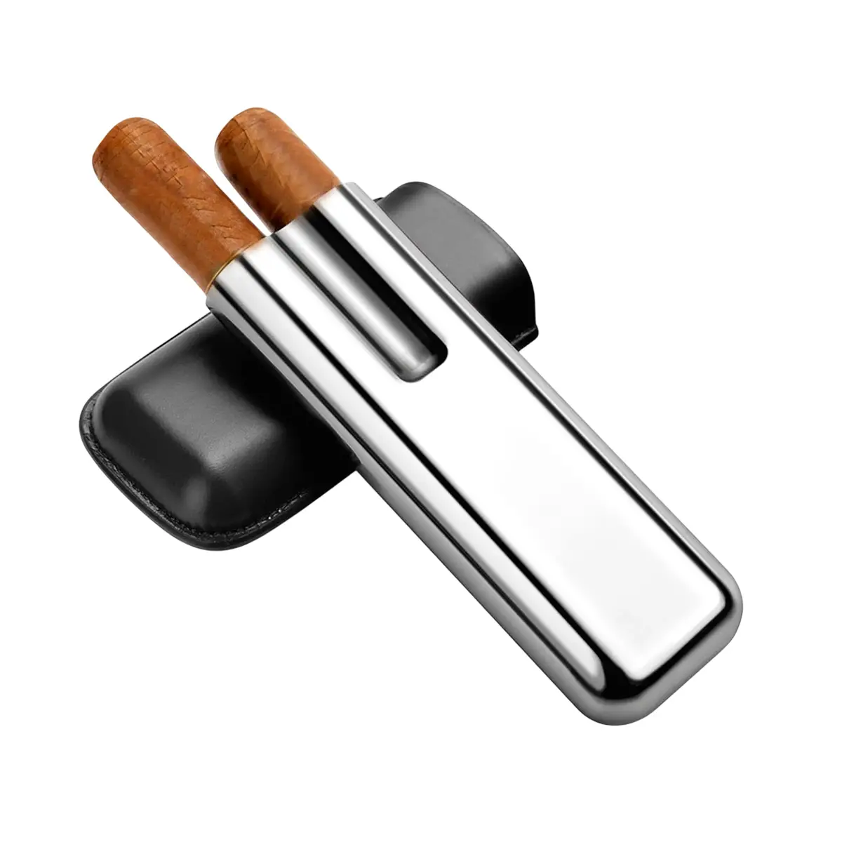 Quality leather cigar case with stainless steel for 2 cigars in camouflage colour design by Sikarlan. Suitable for ring up to 60.