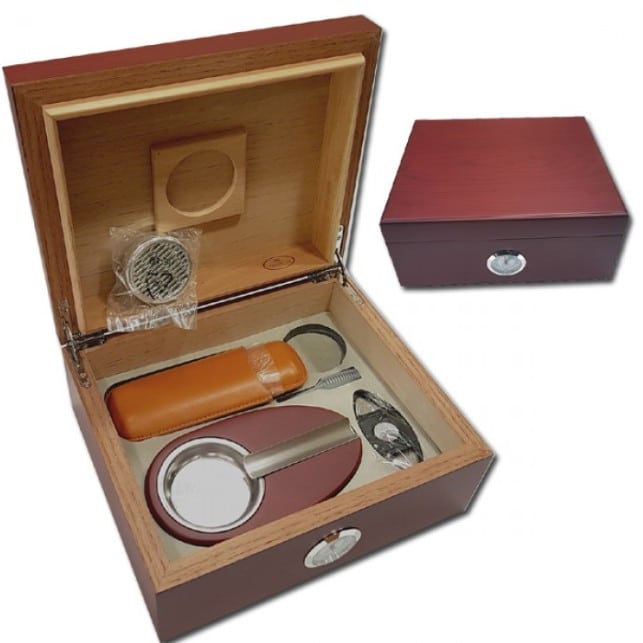 Beautiful humidor – set by Sikarlan in matte cherry color for 40-50 cigars.