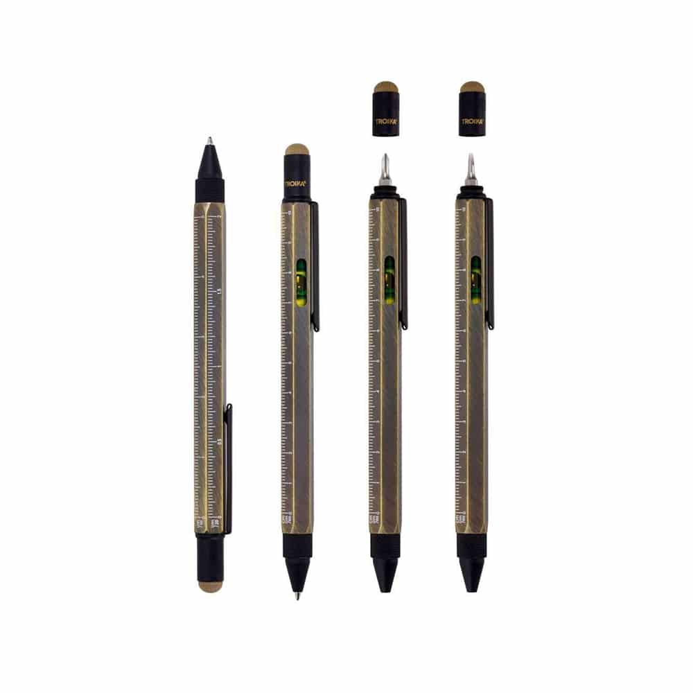 - Ballpoint pen, planning aid and tool case in one. With centimeter and inch rulers, 1:20 m and 1:50 m scale, spirit level, slotted and Phillips screwdriver and stylus