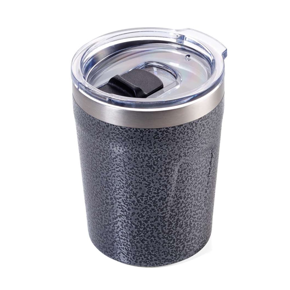 The German TROIKA creates a unique design and presents the thermal mug Espresso Doppio in matte grey-black color.