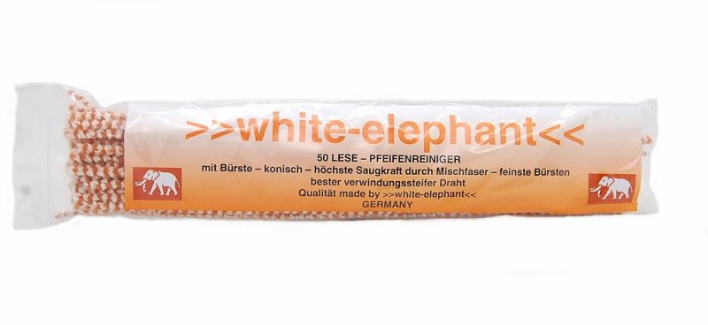 Reinforced, hard long bristle pipe cleaning sticks from the German company White Elephant. Their high absorbency enhances the smoking experience and the cleanliness of your tobacco pipe.