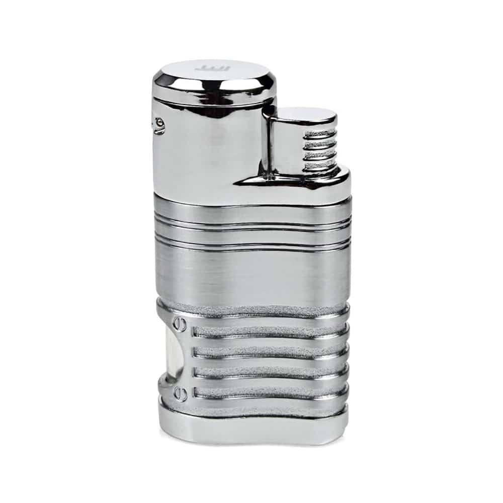 Lighter with modern design with four powerful jet flames. With built-in punch cutter. In chrome color, it’s an easy to use lighter that is refillable and has a window to watch the butane level. Comes in a gift box.