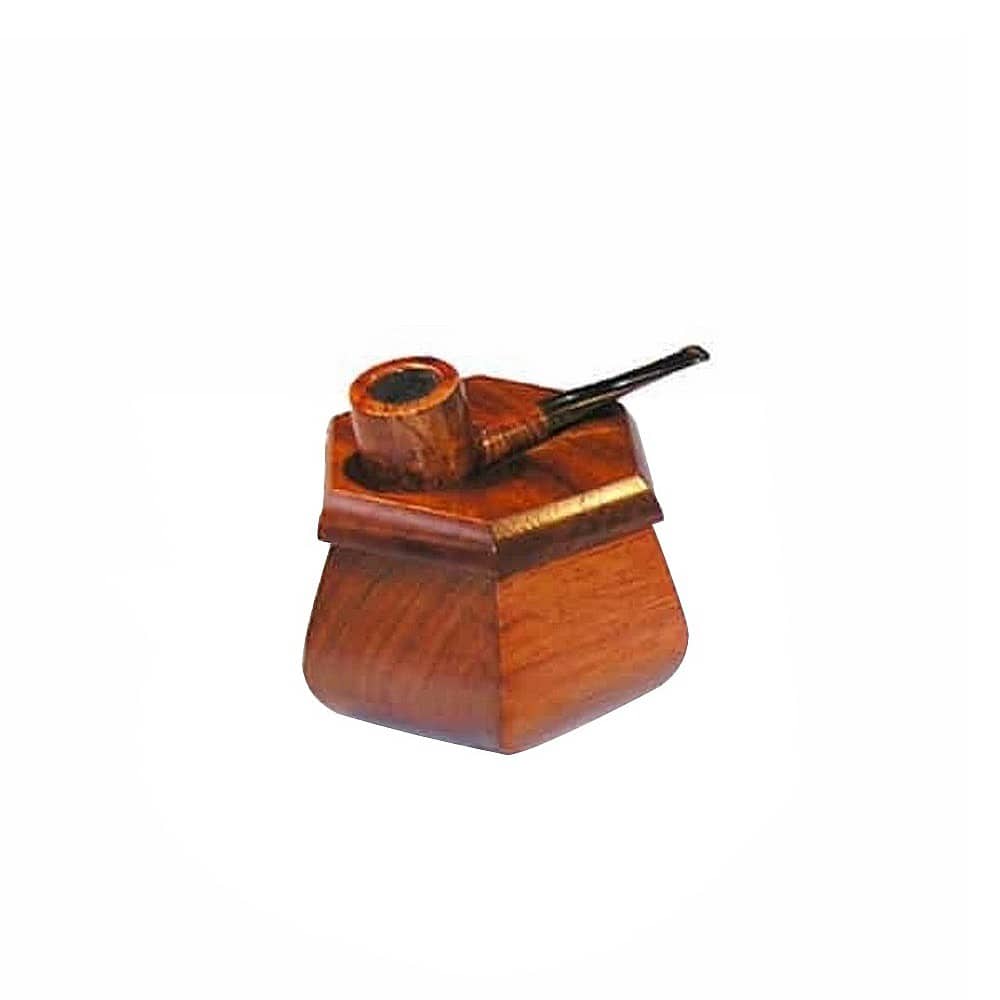 Wooden tobacco pipe vase of solid wood in a polygonal design with a stand for a pipe on the lid, which fits in all areas.