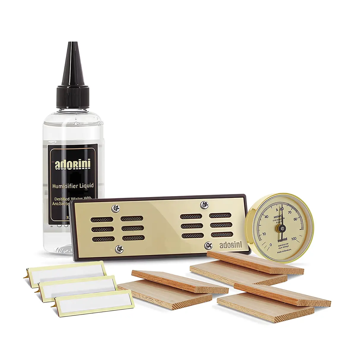 Στιβαρός υγραντήρας με εξαιρετική επένδυση ισπανικού κέδρου, με καλιμπραρισμένο υγρόμετρο  ακριβείας. Διαθέτει επίχρυσο υγραντικό Adorini Deluxe  με ρυθμιζόμενα ανοίγματα για βέλτιστη ρύθμιση του επιπέδου υγρασίας και το σύστημα “RibTech” για την καλύτερη κυκλοφορία του αέρα μέσα στον υγραντήρα, καινοτομίας Adorini.