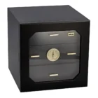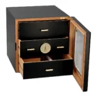 Το Chianti Medium Deluxe φέρνει μια δυναμική και μοντέρνα πινελιά σε κάθε χώρο. Τα συρτάρια καλύπτονται από μια πόρτα με γυάλινη επένδυση, με πολύ ισχυρούς μεντεσέδες για ομαλό άνοιγμα και κλείσιμο, καθώς και ασφαλή στεγανοποίηση χάρη στον έξυπνο μηχανισμό με μαγνήτη. Ένα υγρόμετρο ακριβείας έχει ενσωματωθεί σε ένα από τα συρτάρια, καθιστώντας εύκολο τον έλεγχο του επιπέδου υγρασίας χωρίς να χρειάζεται ποτέ να ανοίξετε τον υγραντήρα. Η υγρασία χορηγείται μέσω του επίχρυσου υγραντήρα Deluxe με βάση το ακρυλικό πολυμερές Αdorini, το οποίο διαθέτει ρυθμιζόμενα ανοίγματα αερισμού για πρόσθετη ευελιξία στον έλεγχο της υγρασίας, που σας επιτρέπει να προσαρμόσετε την υγρασία στο ιδανικό σας επίπεδο. Το υγραντικό στοιχείο συγκρατείται στη θέση του πίσω από τα συρτάρια με μαγνήτες, μεγιστοποιώντας τον επιτρεπόμενο χώρο για έως και 126 πούρα μεγέθους Corona συνολικά. Ο καπλαμάς ισπανικού κέδρου επενδύει τον υγραντήρα για να δημιουργήσει ακριβώς την κατάλληλη ατμόσφαιρα για τα πούρα σας, ενώ η εξαιρετικά ισχυρή σχεδίαση corpus προσφέρει άκαμπτη, μακροχρόνια ανθεκτικότητα. Τα κάθετα και οριζόντια διαχωριστικά βοηθούν να διατηρείται κάθε συρτάρι οργανωμένο, ενώ τα περιλαμβανόμενα κλιπ ετικετών διαχωριστικών βελτιώνουν περαιτέρω την απόδοση αποθήκευσης.