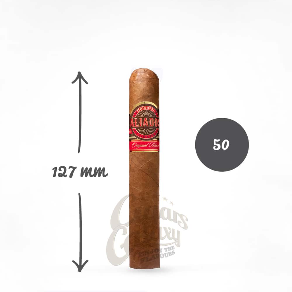 Το Aliados Original Blend προσφέρει μια πραγματικά απολαυστική εμπειρία πούρου, παρουσιάζοντας ένα αρμονικό και γευστικό ταξίδι από την πρώτη ρουφηξιά έως την τελευταία. Με ένα μεσαίο έως γεμάτο γευστικό προφίλ, αυτά τα πούρα προσφέρουν έναν συνδυασμό γεύσεων, από γή μέχρι αρωματικά μπαχαρικά και την απολαυστική υφή των ψημένων καρυδιών.