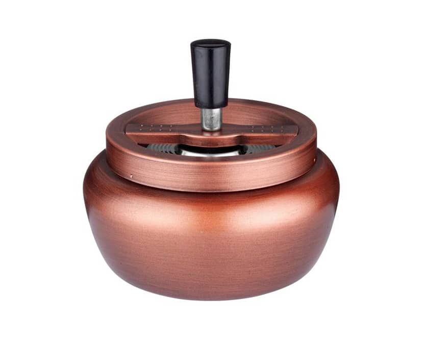 Πολύ όμορφο και πρακτικό ανοξείδωτο τασάκι της Angelo. Είναι αντιανεμικό, καθώς περιστρέφεται έτσι ώστε η στάχτη και το τσιγάρο να πέφτουν μέσα χωρίς να δημιουργείται πρόβλημα με τον αέρα. Σε μπρονζέ χρώμα για να ταιριάζει σε κάθε χώρο.