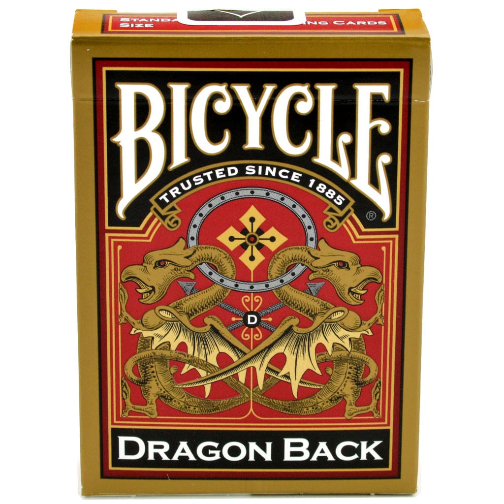 Η καταπληκτική Bicycle Gold Dragon Back παρουσιάζει δαιδαλώδεις κινέζικους δράκους να καθρεφτίζονται σε συνδυασμούς του βαθύ κόκκινου, του χρυσού και ασημί χρώματος.