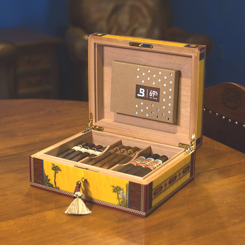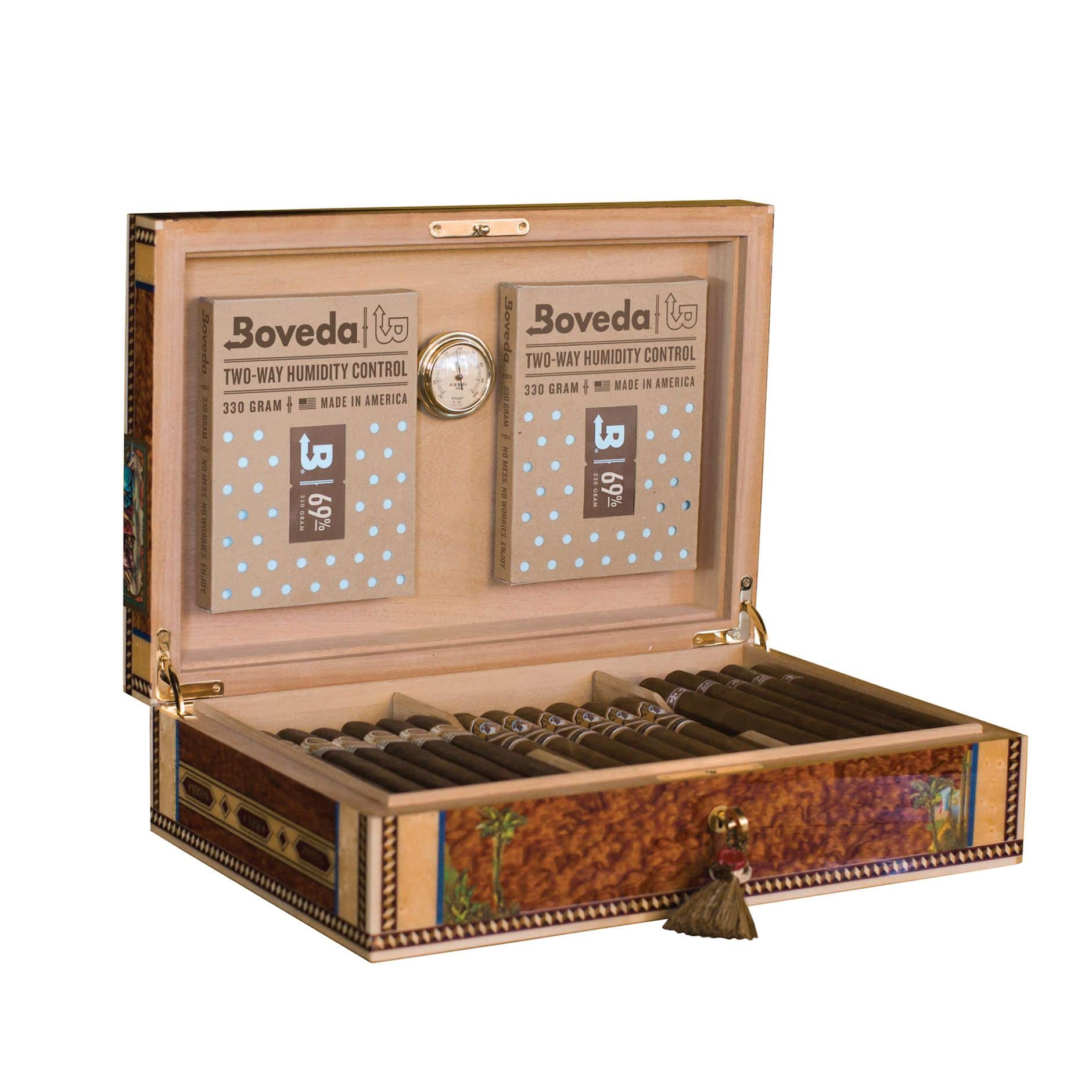Μέχρι τώρα, το μεγαλύτερο και δημοφιλέστερο μέγεθος ήταν τα φάκελα των 60 γραμμαρίων της Boveda για τη συντήρηση των πούρων. Συνήθως, χρησιμοποιούνται 3-4 πακέτα για τη σωστή ρύθμιση ενός humidor. Αυτή η διαδικασία έχει συμπυκνωθεί σε μια μεγαλύτερη ενιαία μονάδα με τη θήκη των 320 γραμμαρίων. Η θήκη αυτή διαρκεί έως 6 φορές περισσότερο από οποιοδήποτε προηγούμενο πακέτο Boveda.