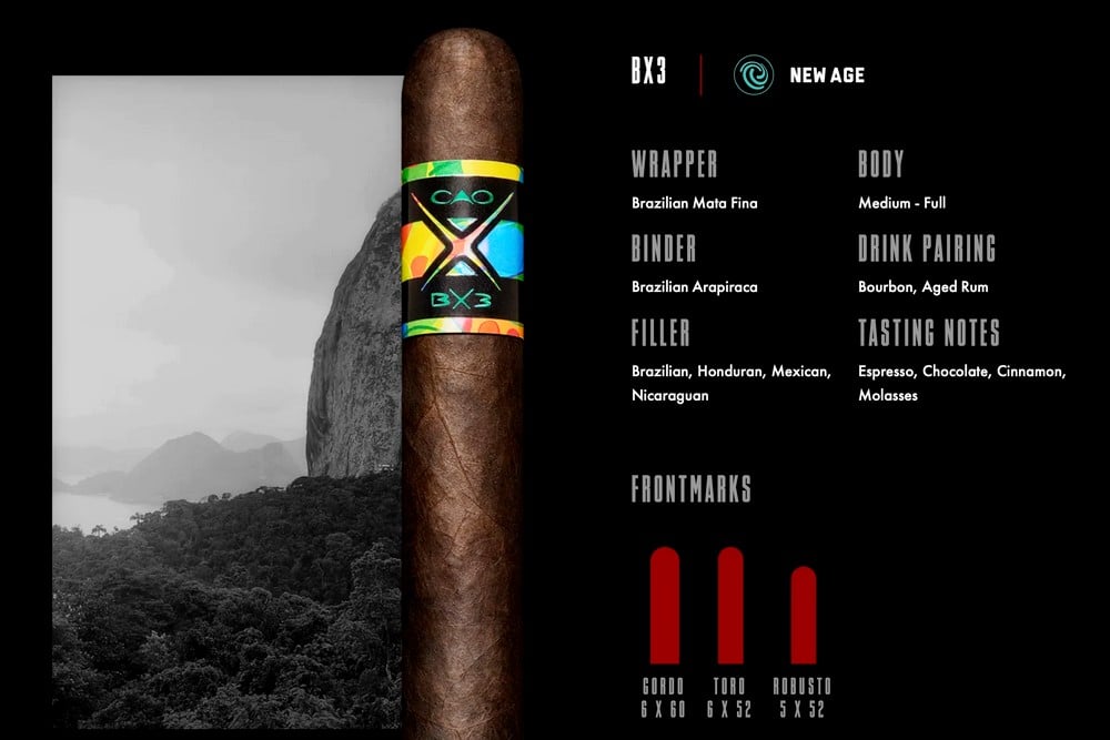 Το αποτέλεσμα της ακατάπαυστης αναζήτησής για την τελειότητα είναι ένα πούρο που η Cao περήφανα παρουσιάζει. Το προφίλ γεύσης του BX3 είναι έντονο, αλλά ποτέ δυσάρεστο. Έχει μια δύναμη που αποκαλύπτει το βάθος αυτών των απολαυστικών καπνών που κατακλύζουν τον ουρανίσκο σας. Είναι μια εμπειρία που ανταμείβει με ανεπανάληπτη ικανοποίηση.