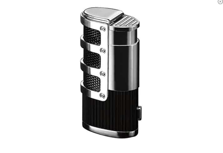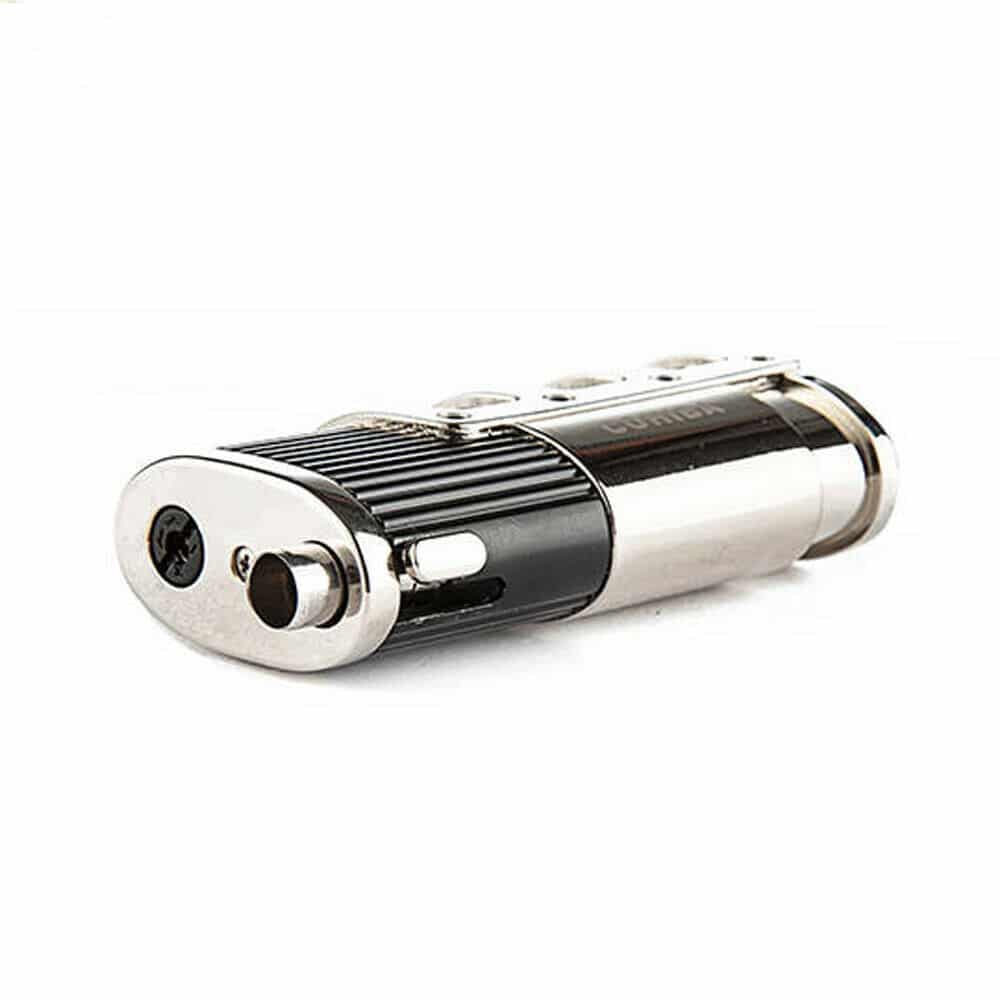 Αναπτήρας torch, κατασκευασμένος από μέταλλο, σε μαύρο χρώμα, με μοντέρνο σχεδιασμό και ενσωματωμένο κόφτη punch, ιδανικό αξεσουάρ για τους λάτρεις των πούρων.