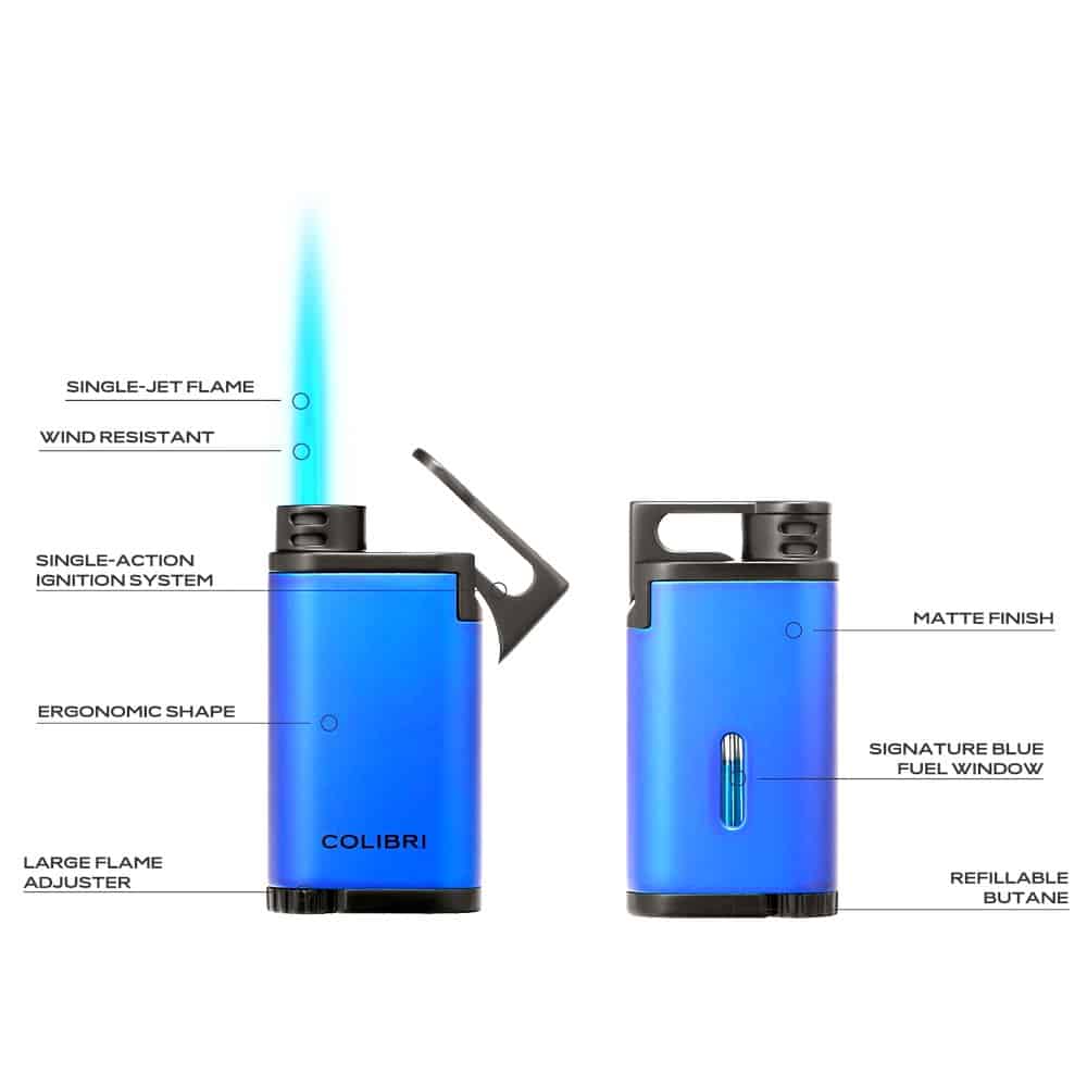 Ο ΝΕΟΣ αναπτήρας Belmont της Colibri είναι ένας αναπτήρας μονής φλόγας jet με δυνατό άναμμα, με κομψό σχεδιασμό και μοντέρνο design σε μεταλλικό ματ μπλε-μαύρο φινίρισμα και δυναμική αισθητική. Η ανάφλεξη ενεργοποιείται με το πάτημα ενός κουμπιού ενώ διαθέτει και παράθυρο για να παρακολουθείτε το επίπεδο του καυσίμου. Μεγάλος τροχός ρύθμισης καυσίμου στη βάση για καλύτερο χειρισμό στις επιλογές υψηλής και χαμηλής φλόγας.