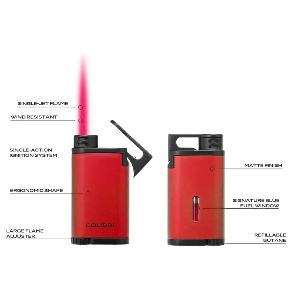 Ο ΝΕΟΣ αναπτήρας Belmont της Colibri είναι ένας αναπτήρας μονής φλόγας jet με δυνατό άναμμα, με κομψό σχεδιασμό και μοντέρνο design σε μεταλλικό ματ κόκκινο φινίρισμα και δυναμική αισθητική. Η ανάφλεξη ενεργοποιείται με το πάτημα ενός κουμπιού ενώ διαθέτει και παράθυρο για να παρακολουθείτε το επίπεδο του καυσίμου. Μεγάλος τροχός ρύθμισης καυσίμου στη βάση για καλύτερο χειρισμό στις επιλογές υψηλής και χαμηλής φλόγας.