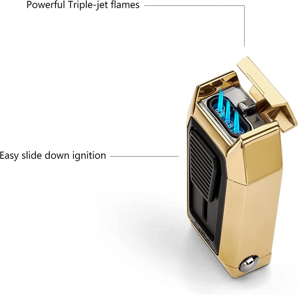 Ο ολοκαίνουργιος τριπλός Jet της Colibri διαθέτει τριπλή φλόγα jet σε σχήμα πυραμίδας για να ανάβει άμεσα το πούρο σας.