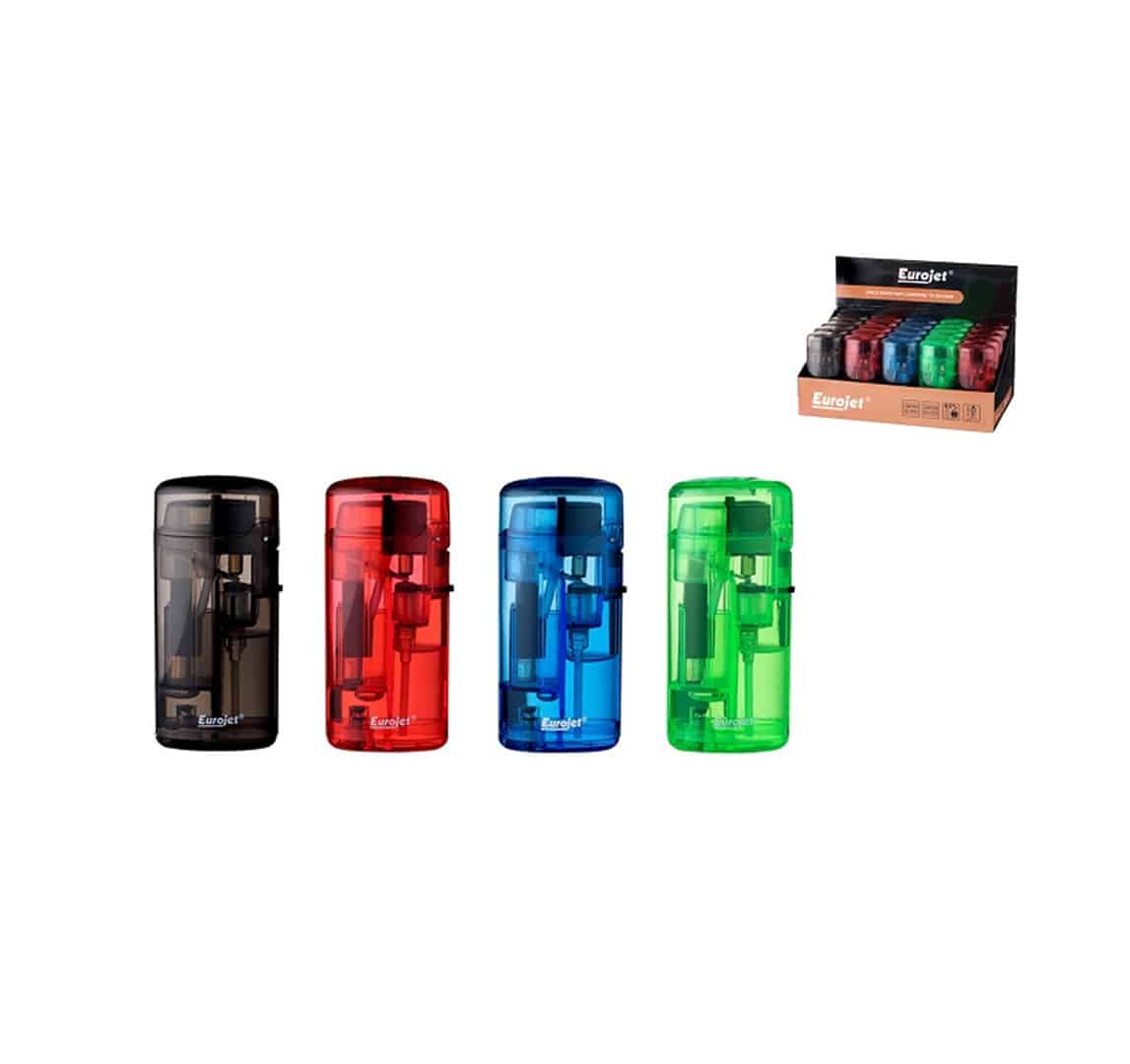 Αναπτήρας με Jet μονή φλόγα της Eurojet, αντιανεμικός, κατασκευασμένος από ανθεκτικά υλικά και με μεγάλη δεξαμενή αερίου.