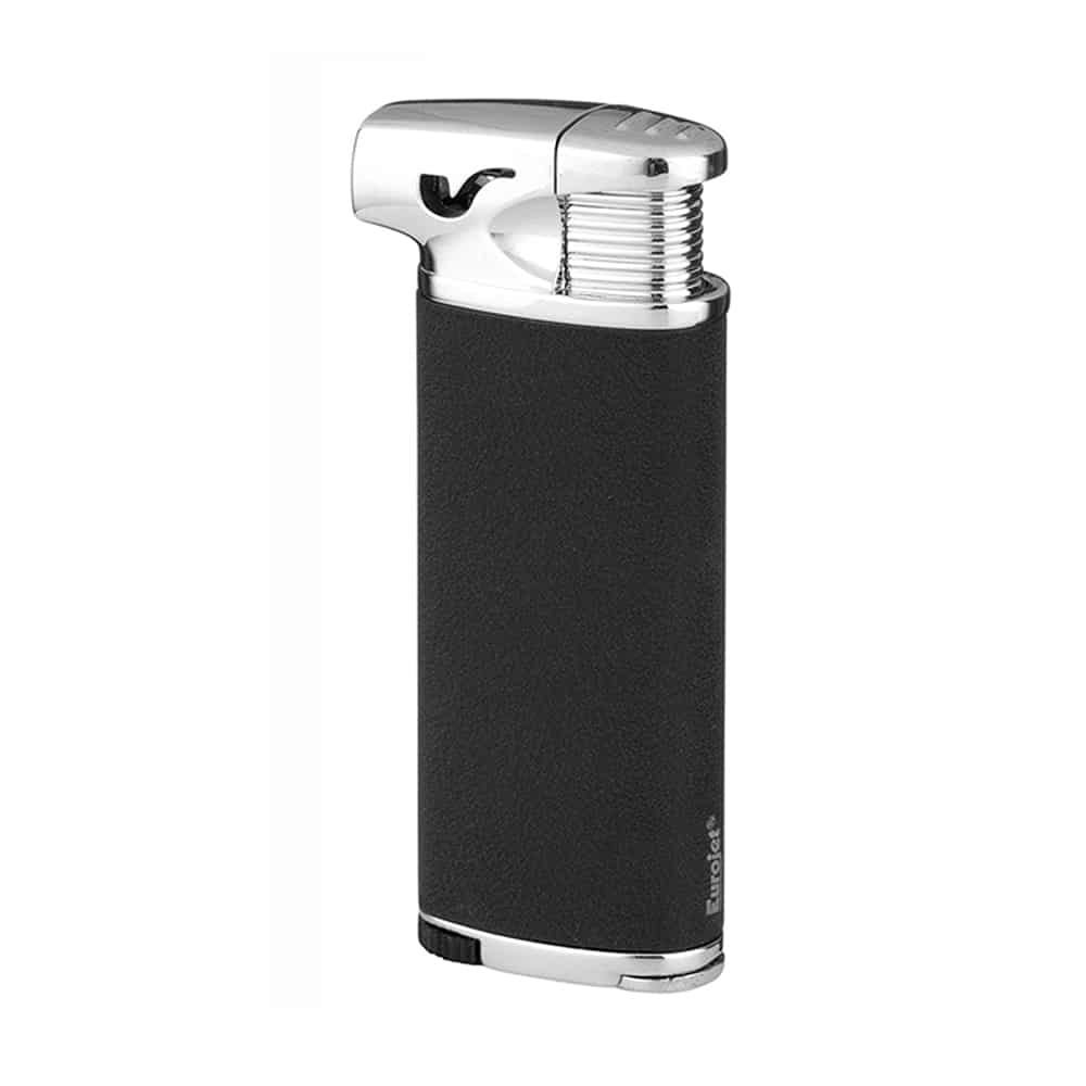 Πιεζοηλεκτρικός αναπτήρας Eurojet απαλής φλόγας με γωνία 90 μοιρών, ιδανικός για το άναμμα της πίπας. Με μεταλλικό σκελετό και σε μαύρο και ασημί χρώμα. Διαθέτει, επίσης, στο κάτω μέρος του μεταλλικό τροχό ρύθμισης για την ένταση της φλόγας.