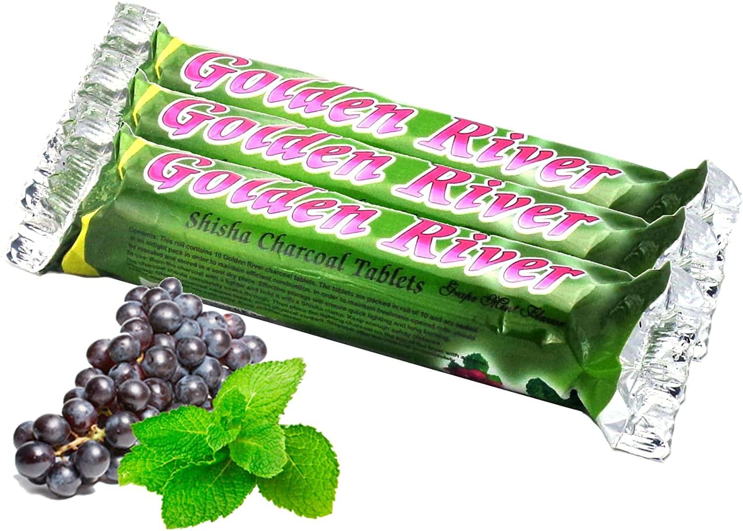 GOLDEN RIVER – Ταμπλέτες Κάρβουνου 10τεμ. Σταφύλι – Μέντα 33mm (343130)