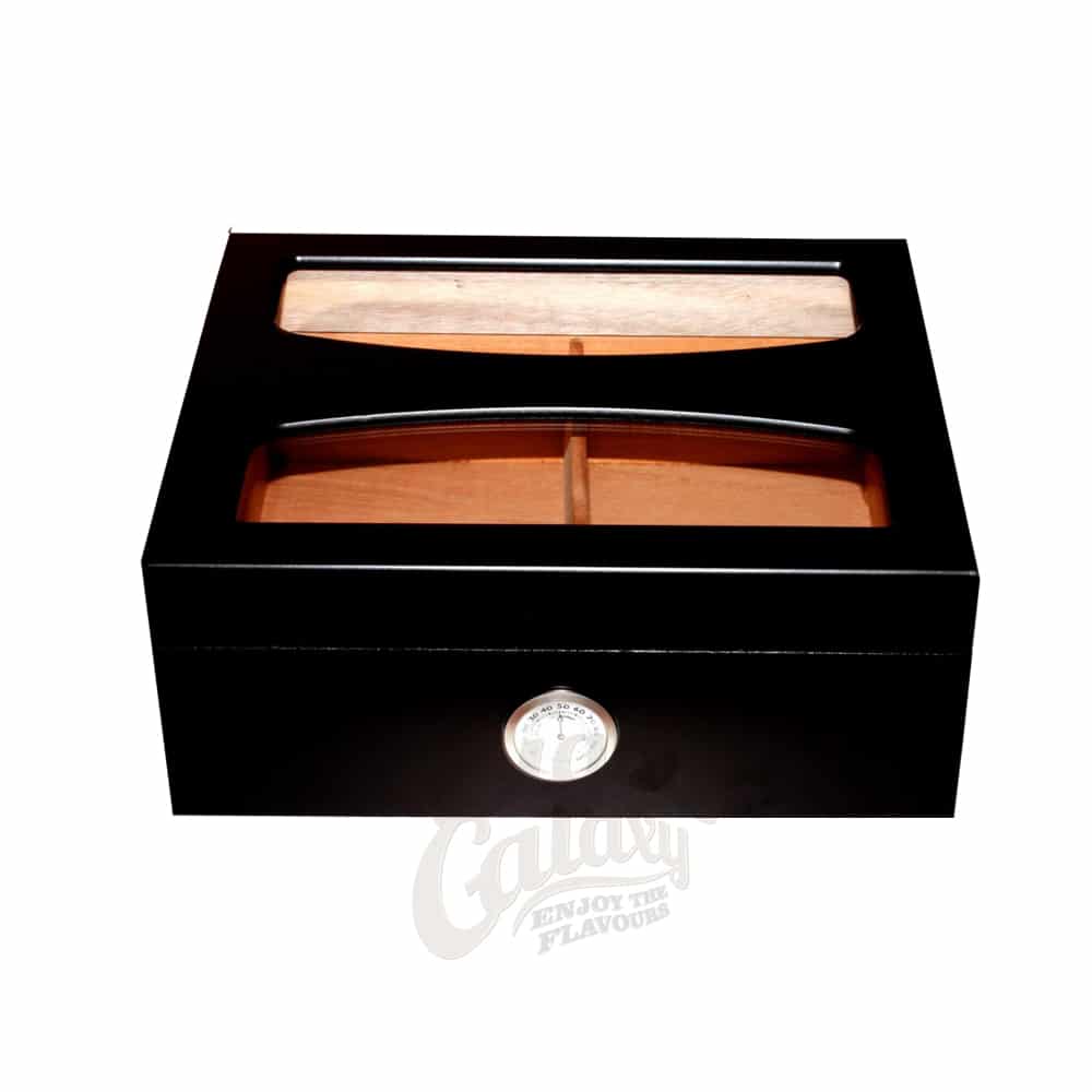 Διαθέτει εσωτερική επένδυση Ισπανικού κέδρου, διαχωριστικό, υγραντικό σώμα και εξωτερικό υγρόμετρο.