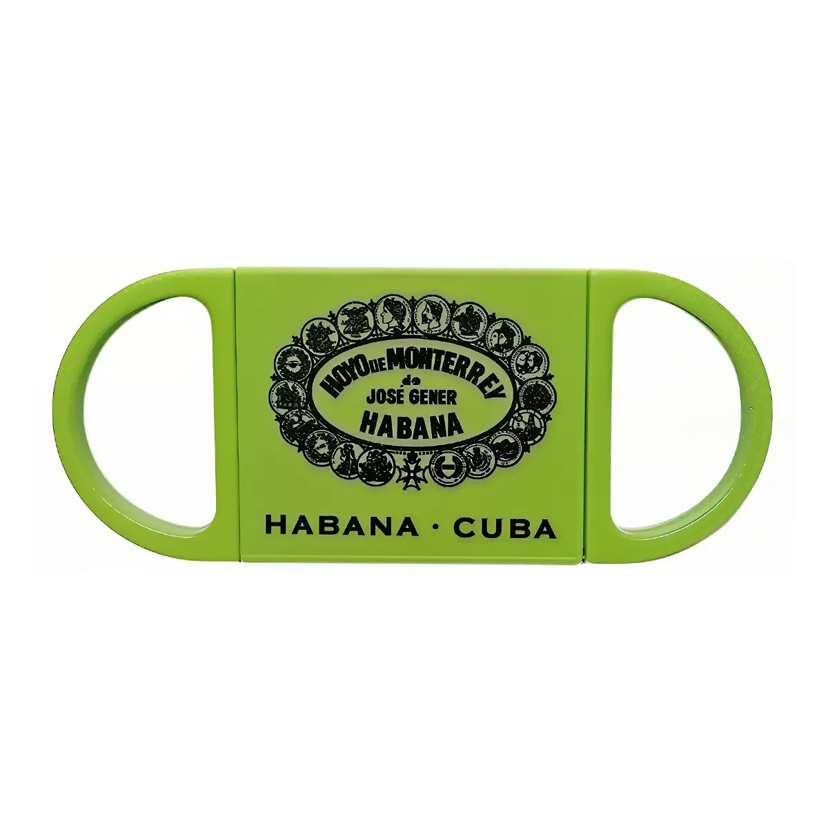 Πουροκόπτης της Habanos με διπλή γκιλοτίνα για πούρα με ring μέχρι 60. Κατασκευασμένος από ανθεκτικά υλικά. Φέρει το σήμα της Hoyo de Monterrey.