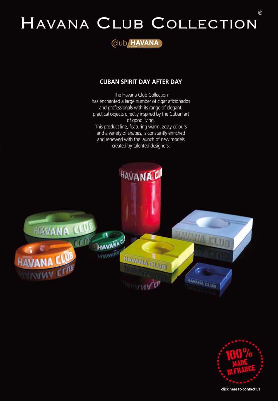 Η Havana Club είναι μια μάρκα αφιερωμένη σε όλους τους λάτρεις των πούρων. Δημιουργεί χειροποίητα σταχτοδοχεία πούρων, κατασκευασμένα 100% στην Γαλλία.