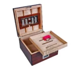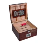 Υγραντήρας για 30-50 πούρα με εξωτερικό φινίρισμα σε σε καφέ ματ χρώμα. Διαθέτει κλειδαριά και ψηφιακό υγρασιόμετρο στο μπροστινό μέρος.