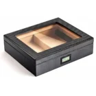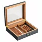 Κομψός υγραντήρας πούρων με πολυτελή εμφάνιση “Carbon Look” και διαφανές τζάμι για να επιβλέπετε εύκολα τα πούρα σας χωρίς να ανοίγετε το καπάκι.