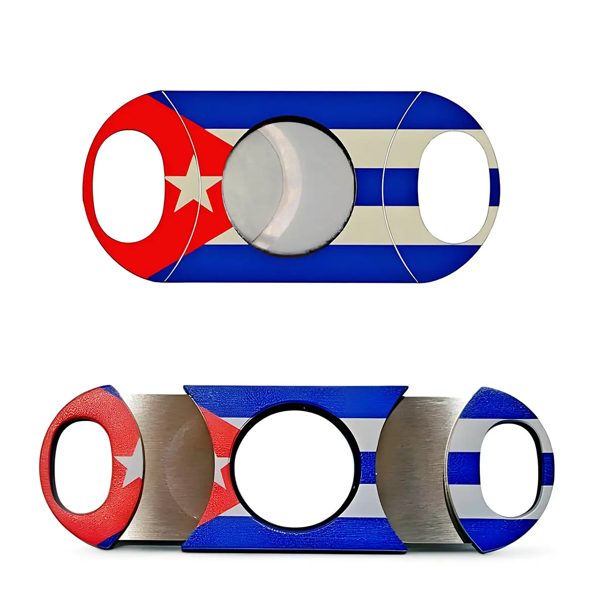 Πλαστικός κόπτης πούρων γκιλοτίνα με τη σημαία της Κούβας και λεπίδες από ανοξείδωτο ατσάλι.
