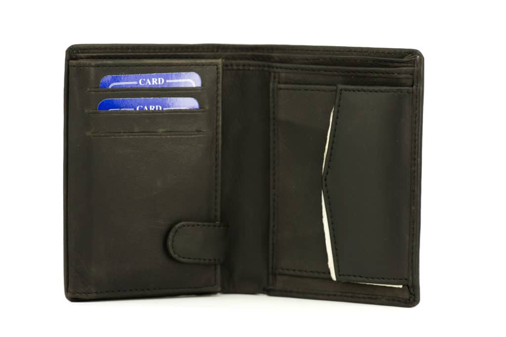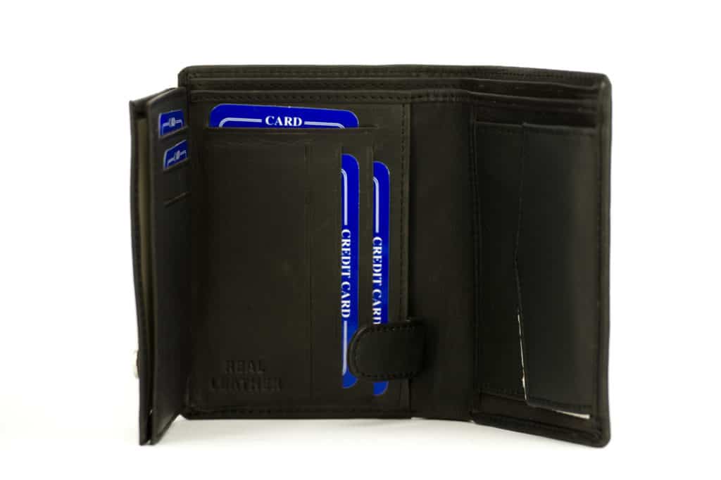 Διαθέτει 10 θήκες για κάρτες, 3 πλαϊνές εσωτερικές τσέπες, 2 θέσεις για χαρτονομίσματα, χώρο για νομίσματα, θήκη για την ταυτότητα και κουμπί.