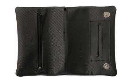 Πολυτελής θήκη καπνού από βινύλιο για στριφτό τσιγάρο με ανάγλυφα carbon σχέδια. Σε μαύρο χρώμα. Οι θήκες καπνού της Mestango είναι πρακτικές, κομψές και διαθέτουν ειδικές θέσεις για τον καπνό, τα χαρτάκια και τα φίλτρα σας ενώ έχουν μαγνητικό κλείσιμο. Η ιδανική λύση για να μεταφέρετε τον καπνό σας και τα σύνεργα του καπνίσματος!